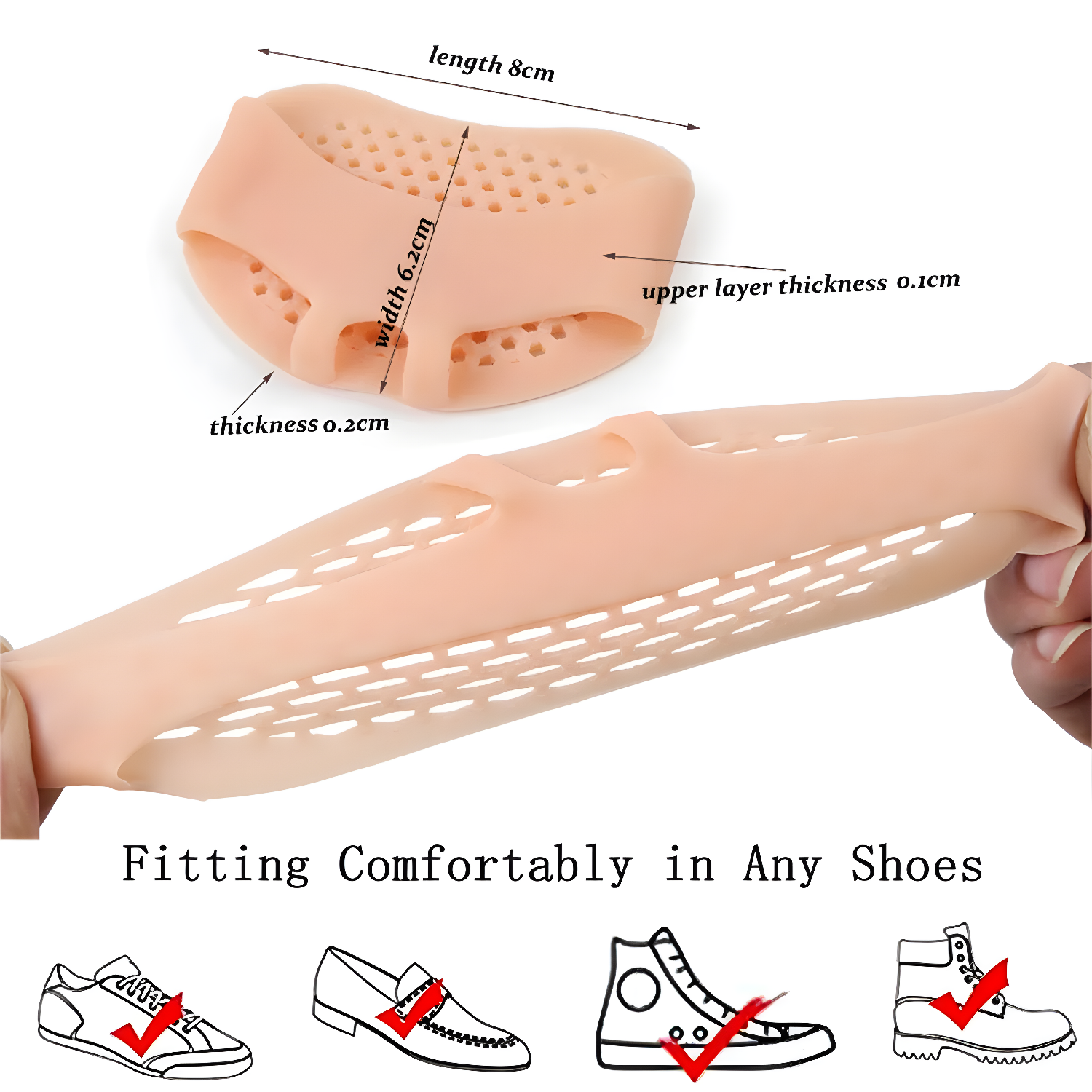 Ultra-thin and flexible — comfortable with socks and most footwear.